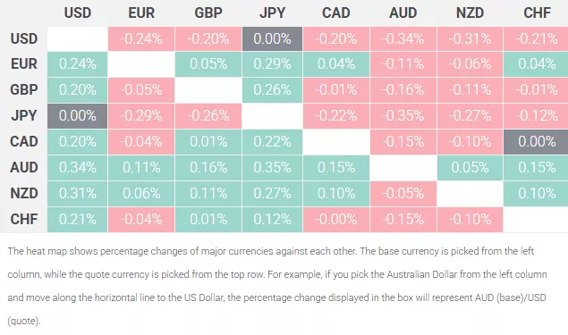 The table below shows the percentage change of Australian Dollar (AUD) against listed major currencies today. Australian Dollar was the strongest against the Japanese Yen.