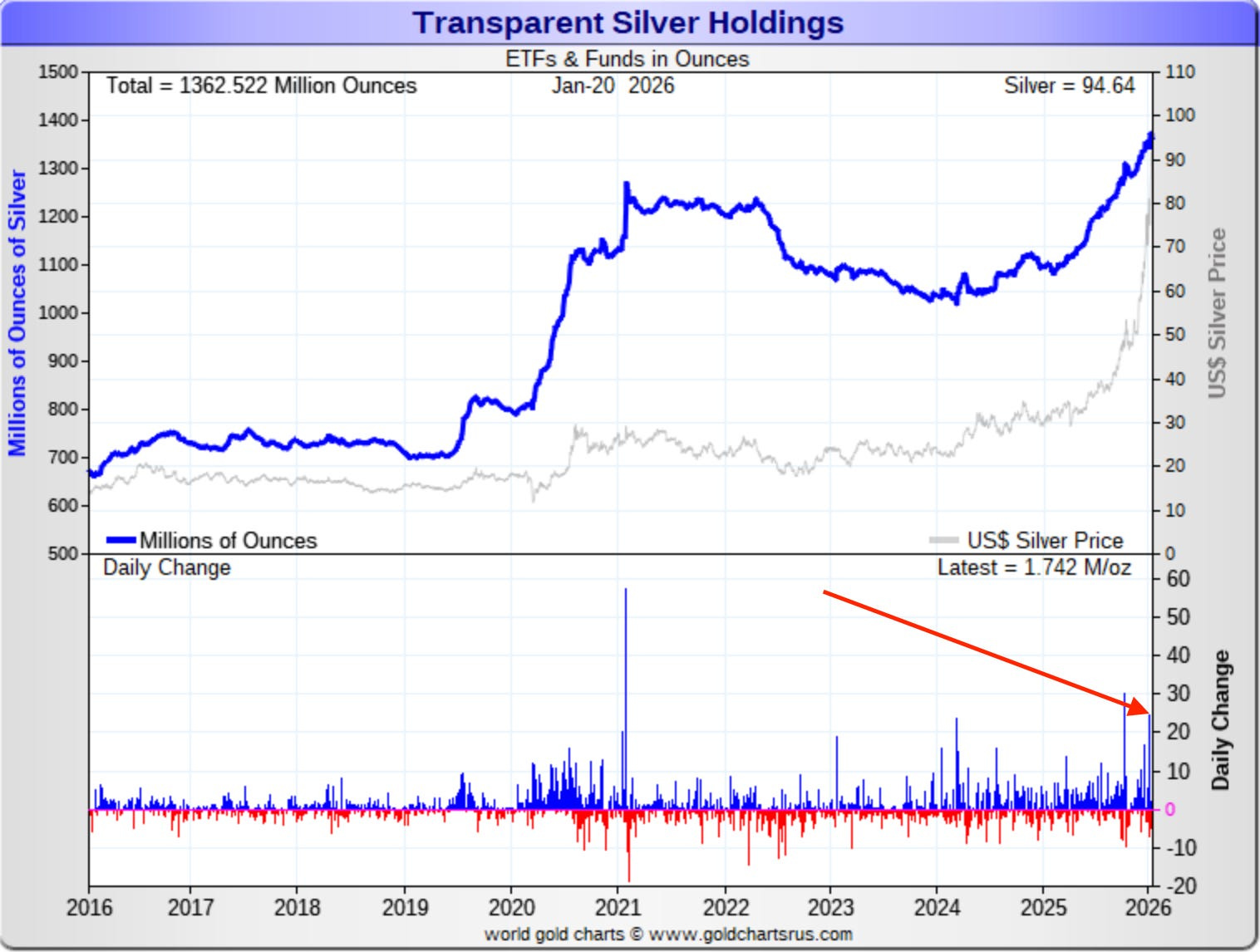 Keep in mind that on January 11, India just added 23.5 million ounces to their ETFs, which is the 4th largest single day ETF addition in the history of the silver trusts.