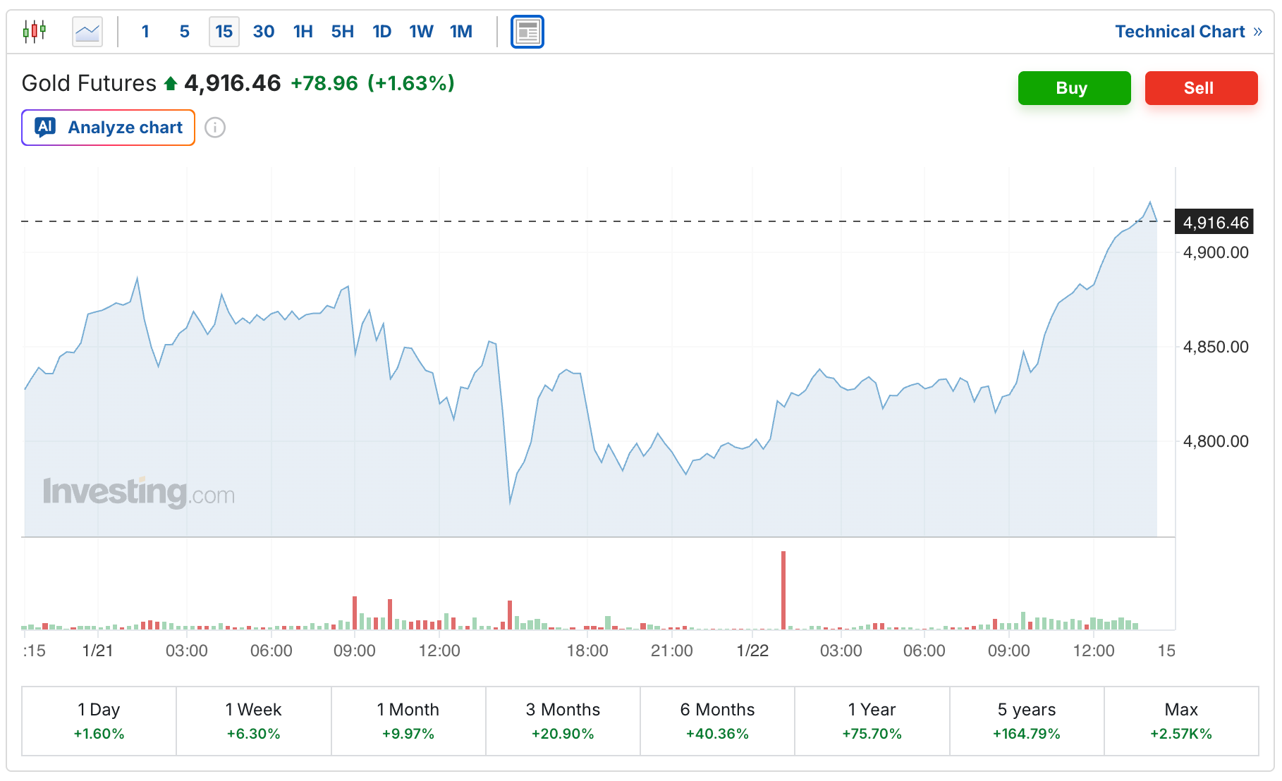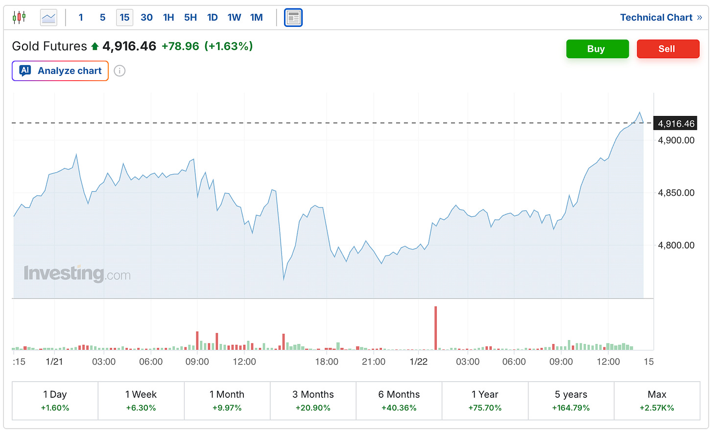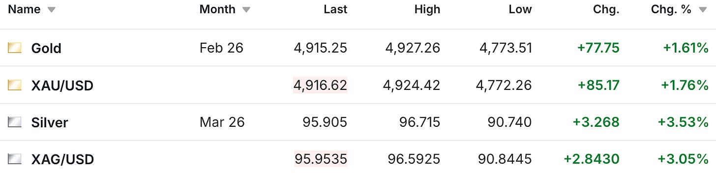 The gold price is also experiencing another record setting day, with the futures currently up $79 to $4,916. The latest all-time high is currently $4,927, set earlier in today’s session.