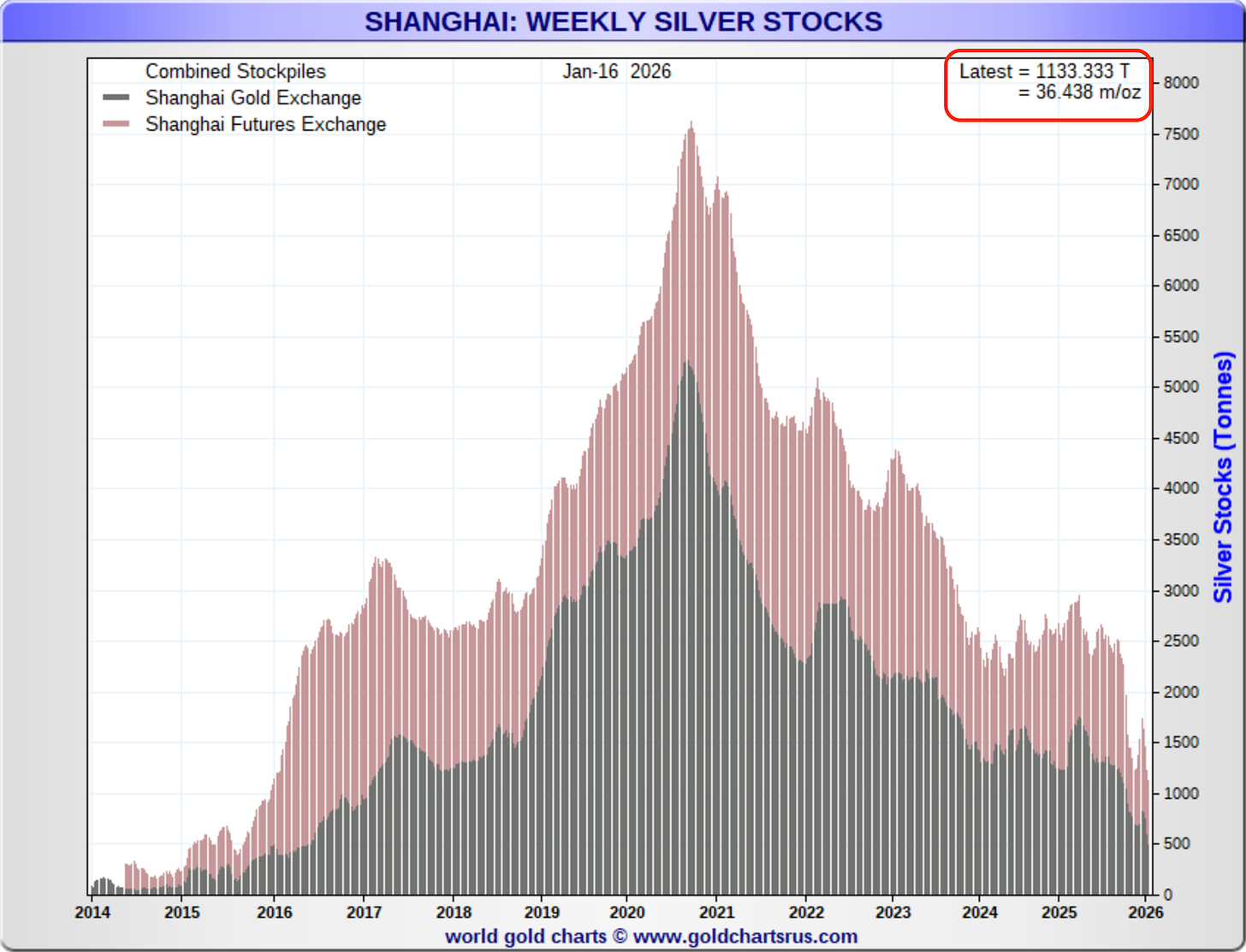 Also worth considering, is what happens if India or London goes back into a shortage? Or if the Chinese supply crisis worsens even further, which really isn’t out of the realm of possibility when you look at how their inventory stockpiles continue to hit new lows, where they’re now down to 36.4 million ounces.