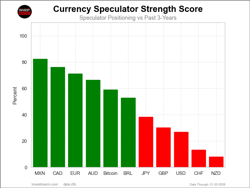 Highlighting the Currency Market Speculator Positions this week were the AUD, MXN, Euro & Dollar Index