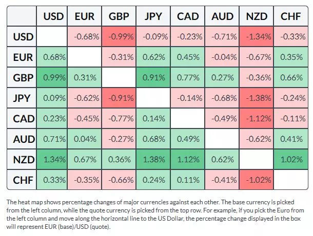 The table below shows the percentage change of Euro (EUR) against listed major currencies this week. Euro was the strongest against the US Dollar.