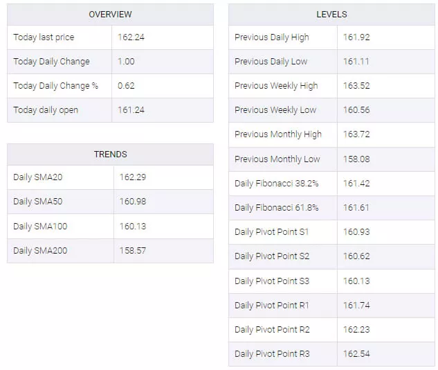 In Friday's trading session, the EUR/JPY currency pair traded with gains at the 162.27 mark, recording a 0.54% rise while attempting to conquer the 20-day Simple Moving Average (SMA). The bulls seemingly maintained a strong grip, as the buying momentum appeared to intensify. Yet, the sellers might come into action in the coming days as the indicators flashed overbought signals.