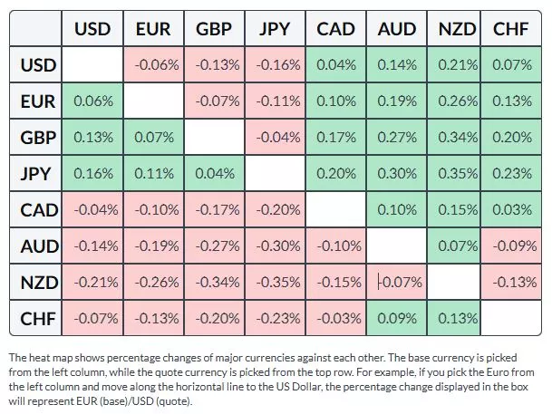 The table below shows the percentage change of Euro (EUR) against listed major currencies today. Euro was the weakest against the Japanese Yen.