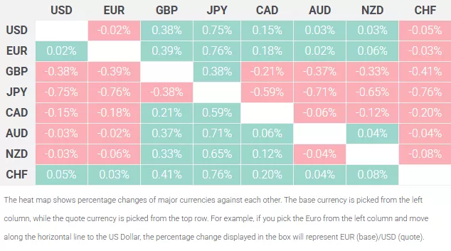 The table below shows the percentage change of Euro (EUR) against listed major currencies today. Euro was the strongest against the Japanese Yen.
