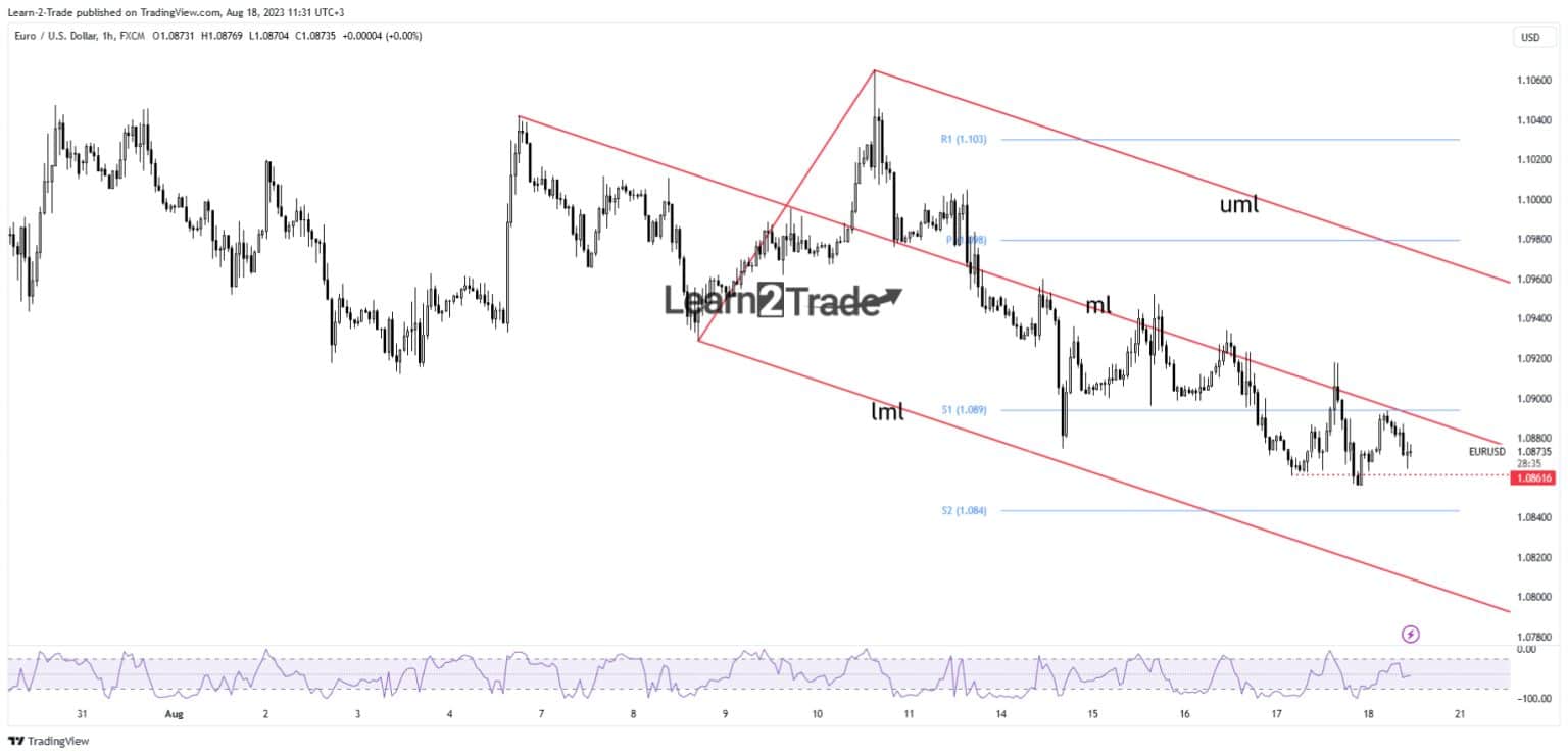 The downside continuation scenario could be invalidated only if the price stays above 1.0861 and jumps above the median line (ml). Temporary rebounds could bring new short opportunities.