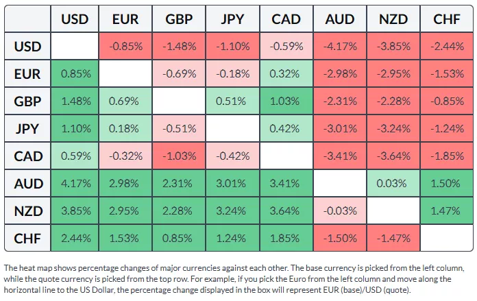 The table below shows the percentage change of Euro (EUR) against listed major currencies this month. Euro was the strongest against the US Dollar.