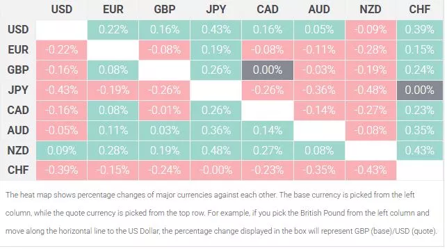 The table below shows the percentage change of British Pound (GBP) against listed major currencies today. British Pound was the strongest against the Japanese Yen.