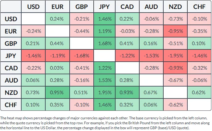 The table below shows the percentage change of British Pound (GBP) against listed major currencies this month. British Pound was the strongest against the Japanese Yen.