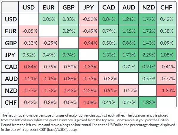 The table below shows the percentage change of British Pound (GBP) against listed major currencies this week. British Pound was the strongest against the New Zealand Dollar.