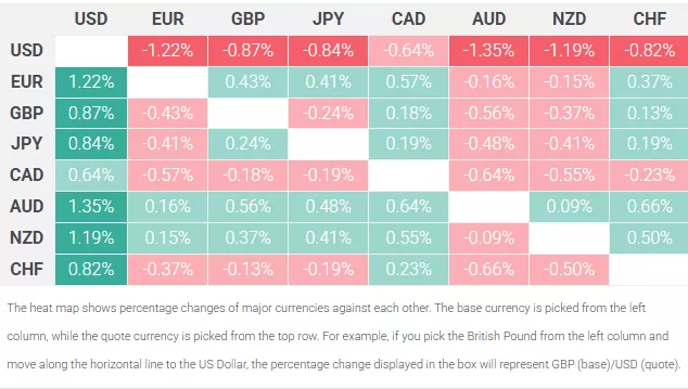 The table below shows the percentage change of British Pound (GBP) against listed major currencies this week. British Pound was the strongest against the US Dollar.