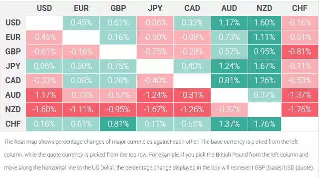 The table below shows the percentage change of British Pound (GBP) against listed major currencies this week. British Pound was the strongest against the New Zealand
