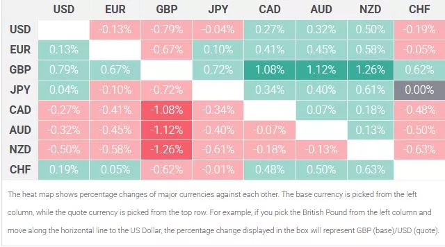 The table below shows the percentage change of British Pound (GBP) against listed major currencies this week. British Pound was the strongest against the New Zealand Dollar.