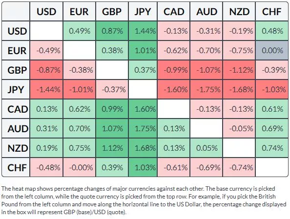 The table below shows the percentage change of British Pound (GBP) against listed major currencies this week. British Pound was the strongest against the Japanese Yen.