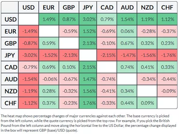 The table below shows the percentage change of British Pound (GBP) against listed major currencies this month. British Pound was the strongest against the Japanese Yen.