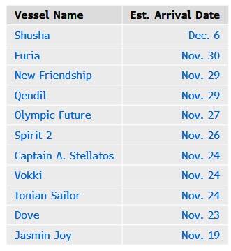 Most of the tankers are heading either to the Jamnagar refinery or to Rosneft-linked Nayara Energy’s Vadinar port. Delivery dates range from the end of November and into December. Should the ships fail to arrive by Nov. 21, they could idle off India’s shores while they consider their next moves, which can include ship-to-ship transfers to other tankers and diversions to new destinations such as the waters off Malaysia or even further to China.