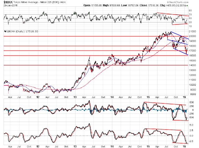 Was Friday's world-market rally serious and sustainable, or simply a knee-jerk reaction to Japan's surprise NIRP (negative interest rate policy) announcement (including some shorter-term short-covering action) and "end-of-month window dressing" by fund managers?