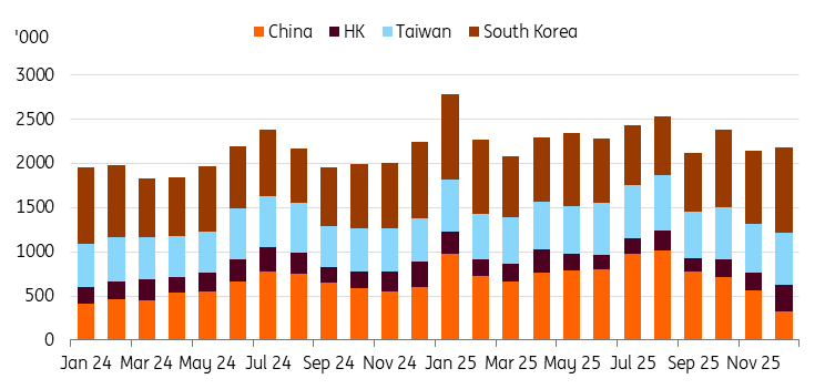 Retail sales dropped more than expected in December by 2.0% month-on-month, seasonally-adjusted (vs revised 0.7% in November, -0.5% market consensus). The decline was across all major items except for an uptick in household machines. The recent decline in Chinese tourists may have contributed, yet after three consecutive months of gains, retail sales may simply be pausing. Compared to the third quarter of 2025, retail sales rose firmly by 1.1% quarter-on-quarter, from -1.8% in 3Q25. As such, it should contribute positively to overall growth.