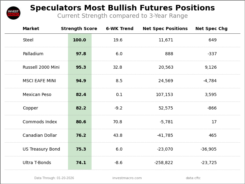 Here are this week's most bullish speculator positions.