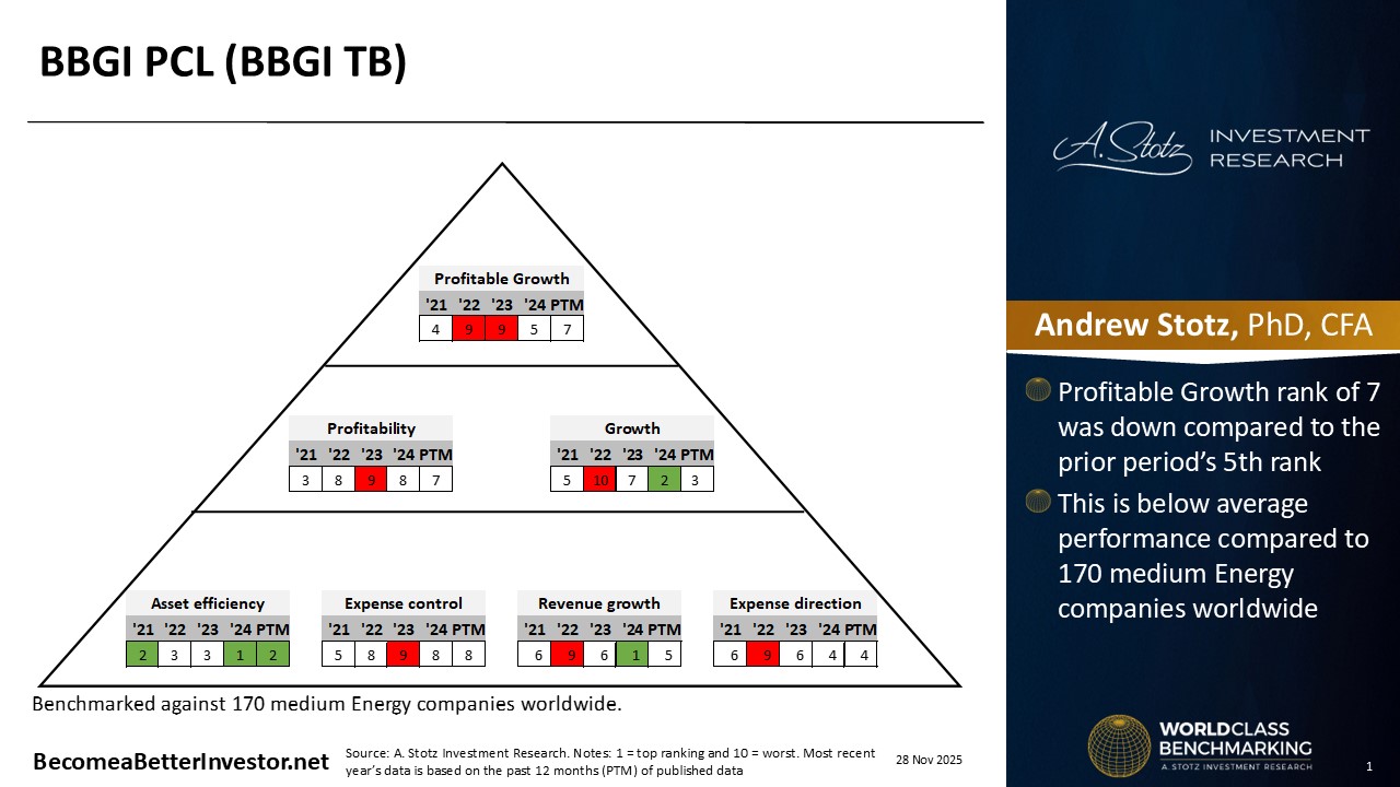 - Profitable Growth rank of 7 was down compared to the prior period’s 5th rank