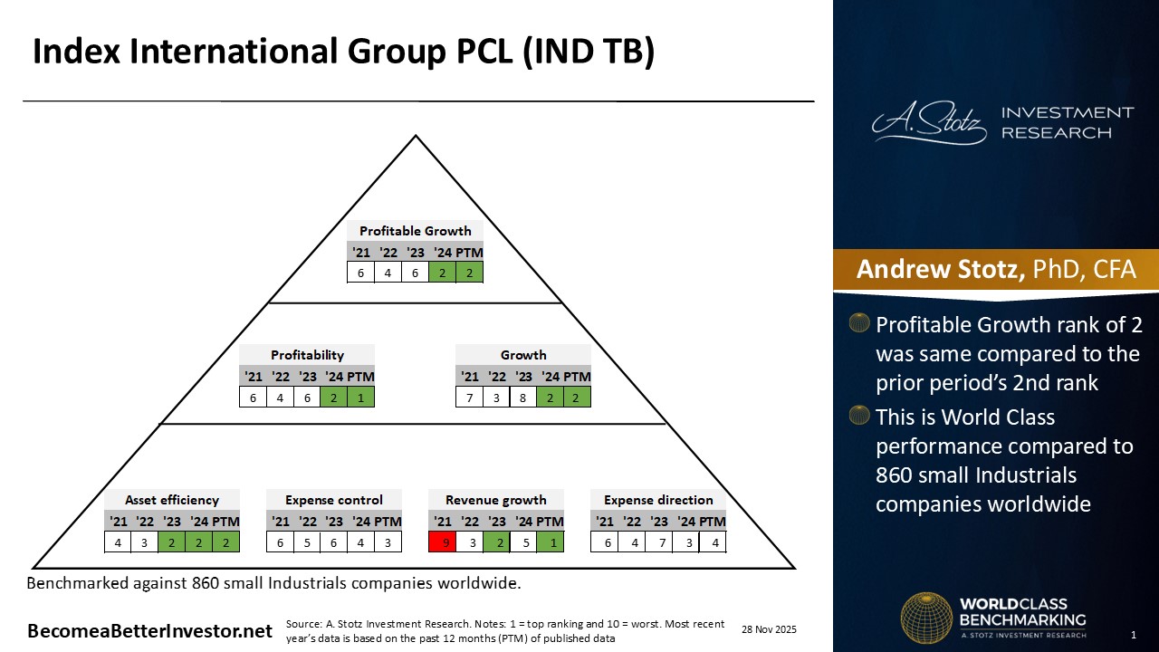 Background: Index International Group Public Company Limited is a consulting and engineering design firm. Its core products are comprehensive services for city planning, architectural design, and detailed structural/transportation engineering for major public and private infrastructure projects.