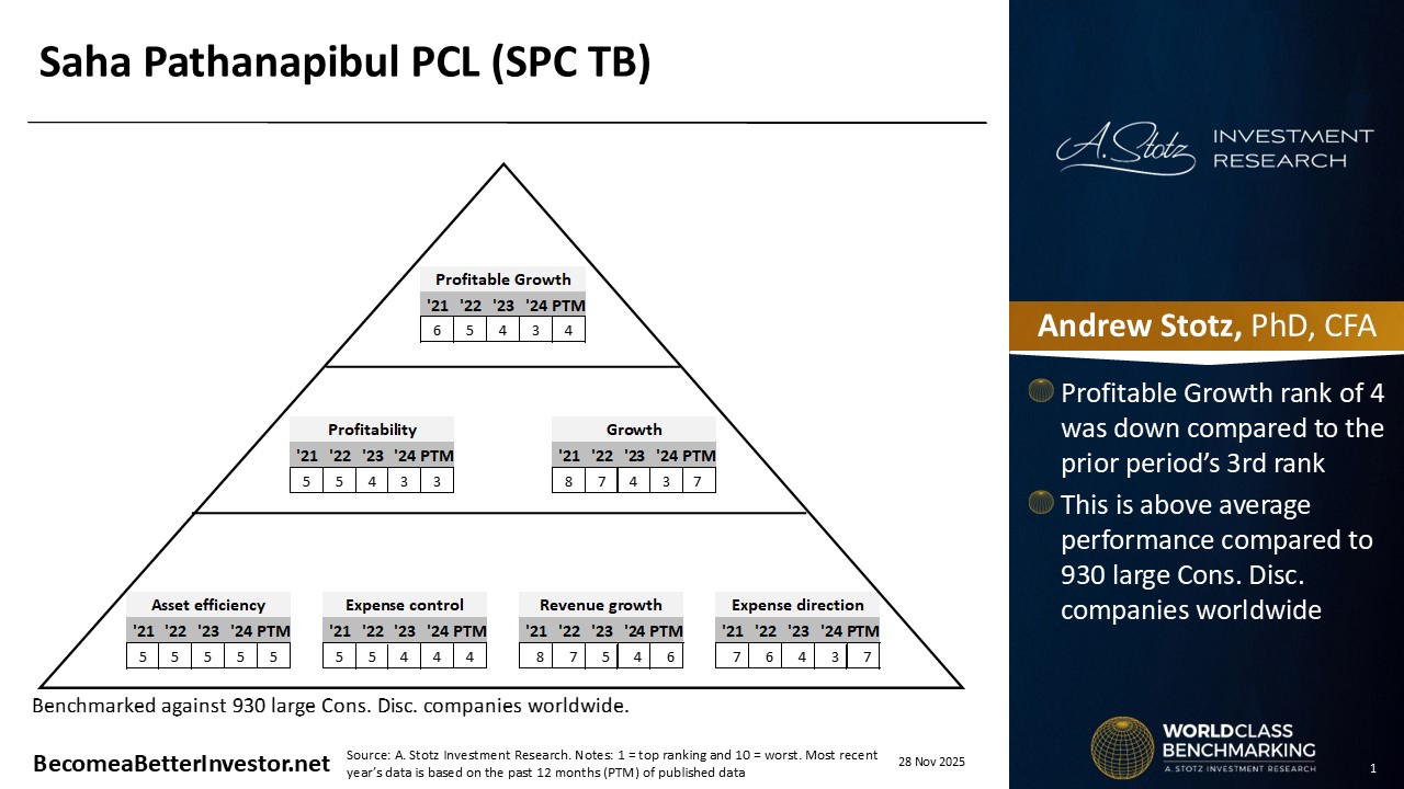 Background: Saha Pathanapibul Public Company Limited is a consumer goods distributor operating nationwide and globally. It distributes well-known Thai household goods and food products across its network of traditional and modern trade channels with over 72,000 retail outlets.