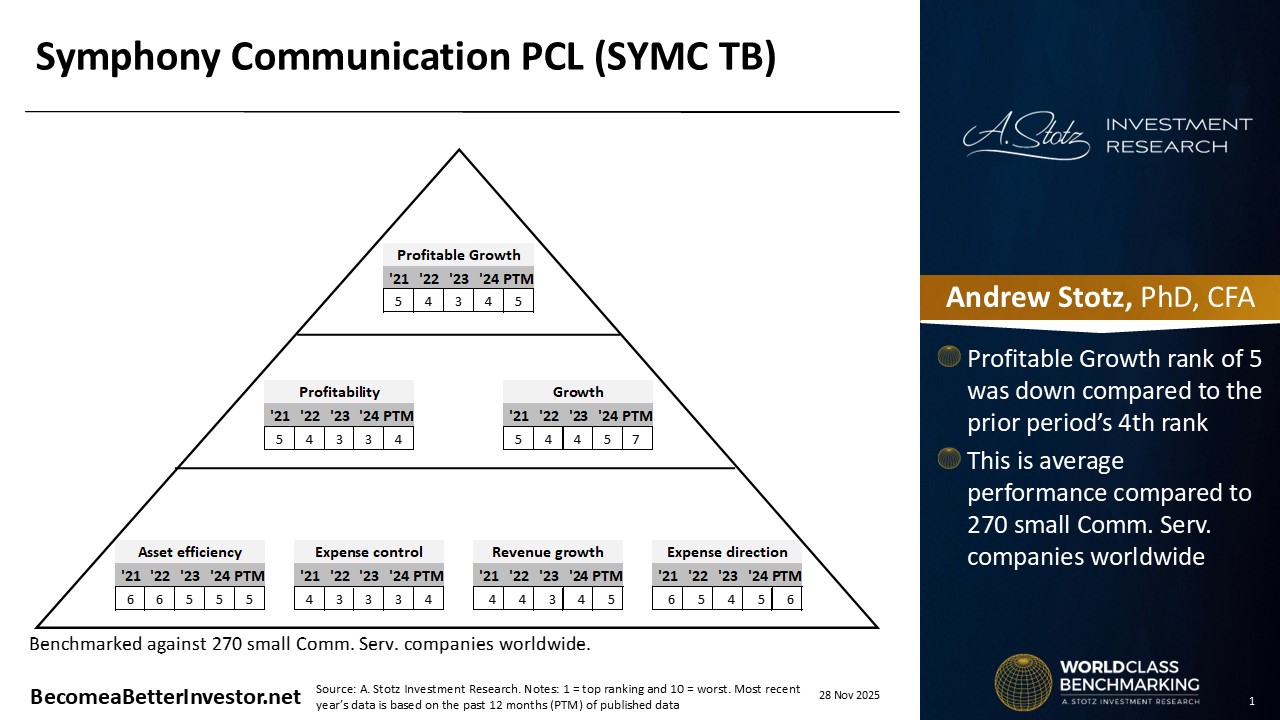 - This is average performance compared to 270 small Comm. Serv. companies worldwide