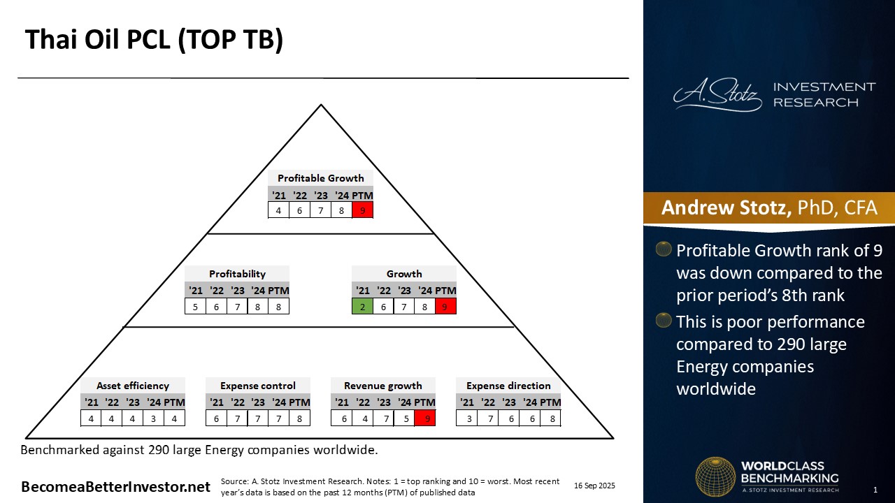 - Profitable Growth rank of 9 was down compared to the prior period’s 8th rank