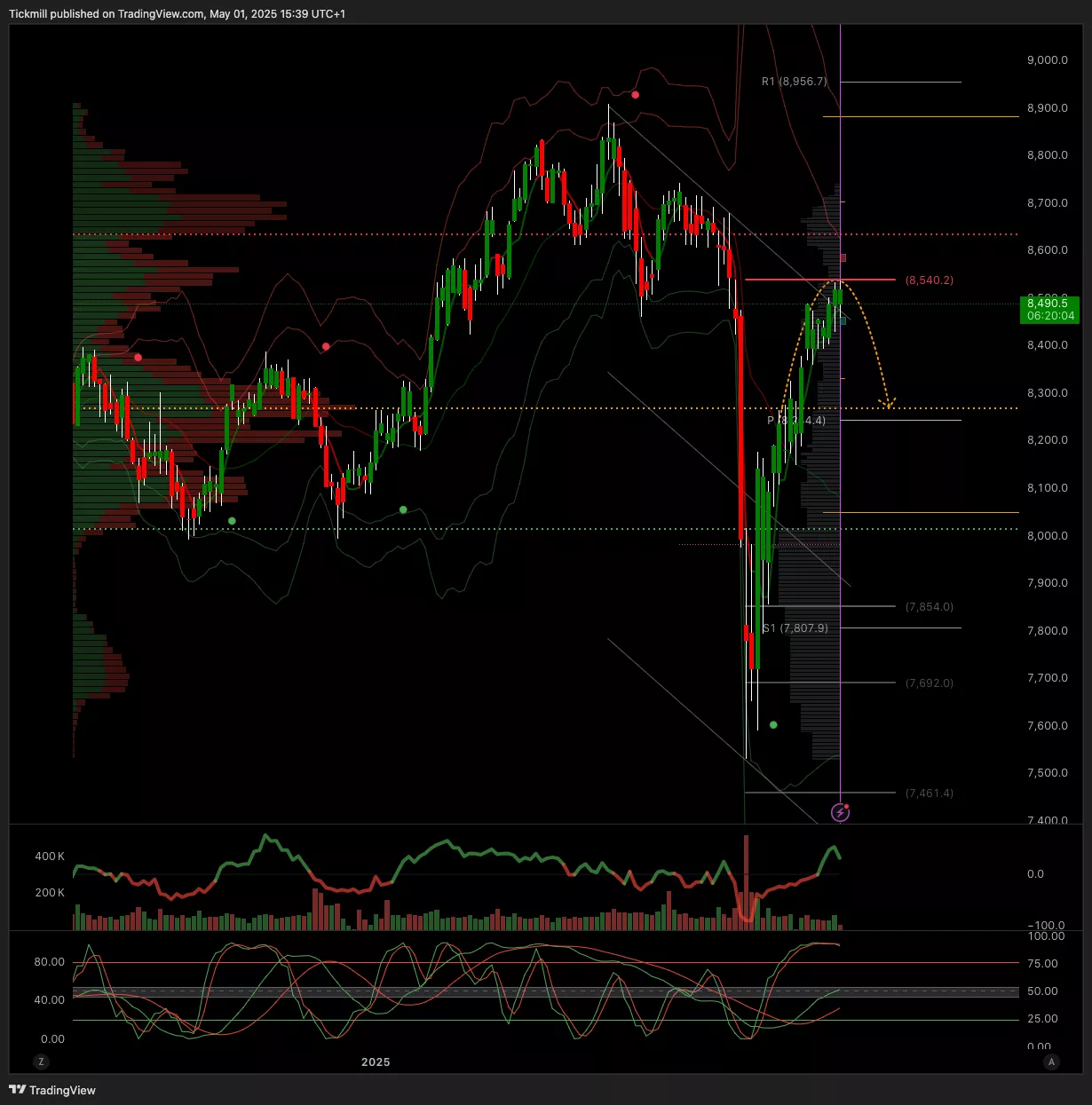 - Below 7800 opens 7648