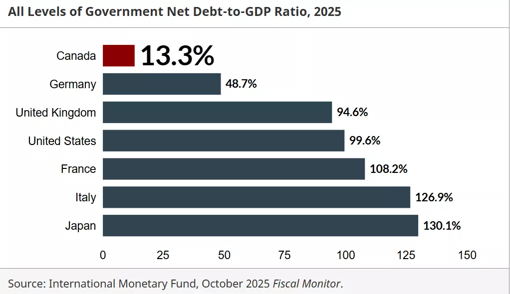 The federal deficit is projected to hit the C$78 billion mark in the coming fiscal year, 2025/26. Considering debt held by the provinces and the federal government combined,the budget deficits pose no real concern within the financial markets. Combining debt held by the provinces and the federal government Canada has the lowest net debt-to-GDP ratio at 13% of any G-7 nation.. The US and European counterparts' debt ratios range from 90% to over 130%. Canada has been awarded AAA credit rating for its past performance and this rating should prevail going forward.