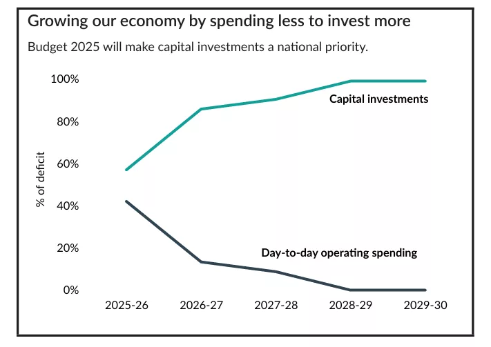 The other important feature is the separation of long term capital investments from day-to-day operating costs. The long term spending is related to several obligations, such as commitments to NATO defense, improved infrastructure,housing, and adjustments to tariff-induced impacts on workers in specific sectors.