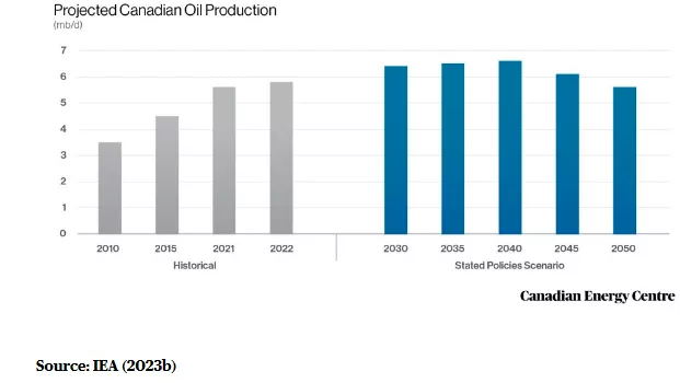 The Alberta Energy Regulator agency anticipates thatprice of Canadian Western Select (WCS) will barely increase from $61 bbl today to $63 bbl by 2034.Price forecasts are not encouraging to get the industry to buy into new pipelinesThis forecast is consistent with global forecasts issued by IEA which anticipates that oil and gas demand will peak by 2035 and then steadily decline. Long-term forecasts are speculative and depend on such factors as global economic growth, the transition to electric vehicles and climate change policies. On balance, the Canadian fossil fuel industry expects peak oil to occur around 2035, a short time horizon when considering the viability of multi-billion-dollar investments over a much longer time span than the coming decade.