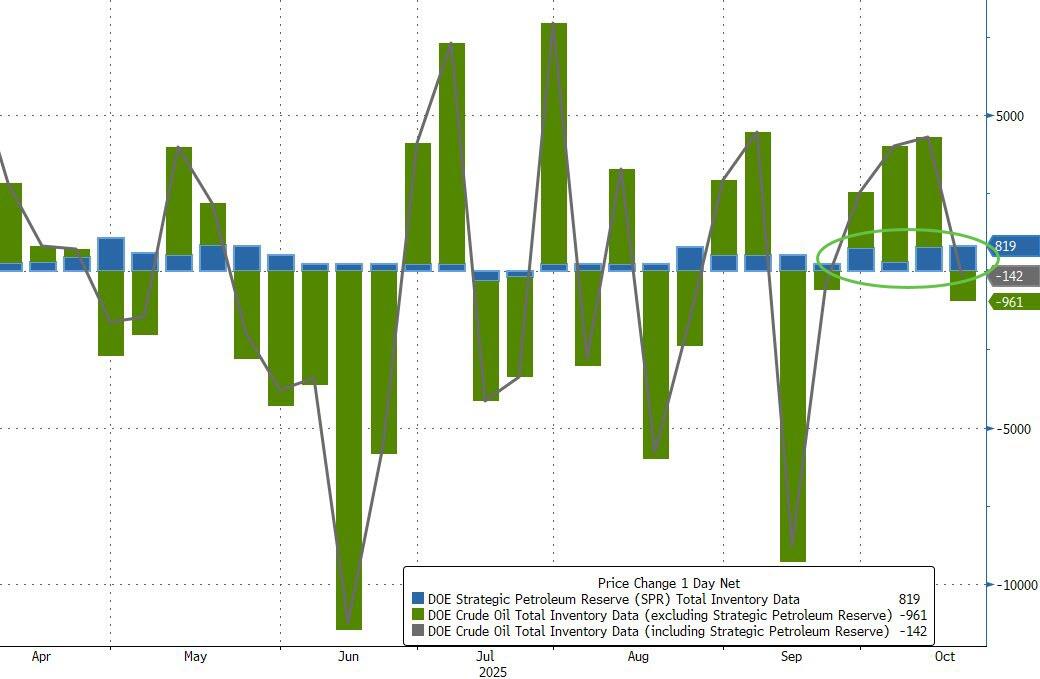 As we detailed yesterday, the Trump administration announced plans to buy 1 million barrels of crude to add to the SPR. As the chart below shows, that's not exactly 'unprecedented' as weekly additions have been around 500k barrels all year. The 819k barrel addition last week was not quite enough to offset the961k barrel decline from DOE...