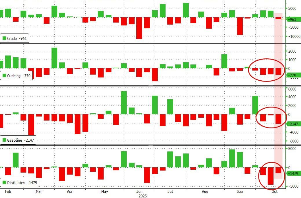 Official inventory data confirmed the trend of API overnight with across-the-board drawdowns (though smaller than API). This is the 3rd straight week of drawdowns for products and at the Cushing hub...