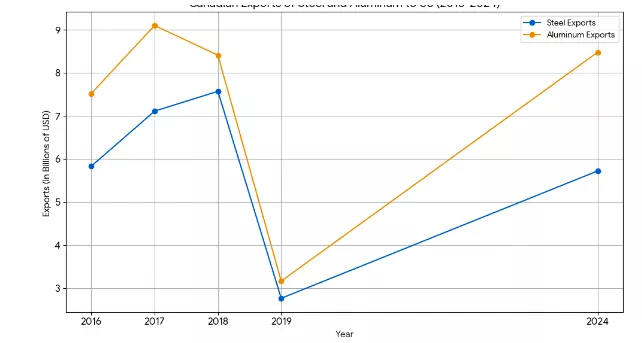 Figure 1 Canadian exports of steel and aluminum to U.S.