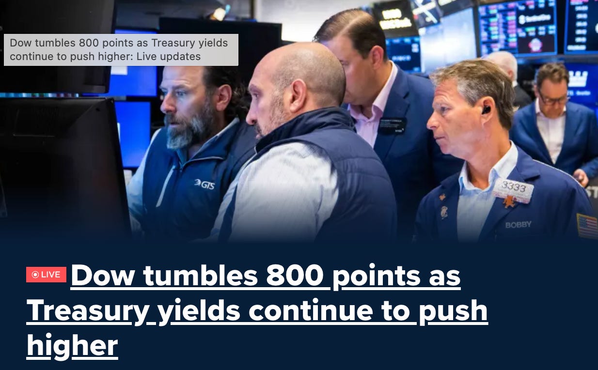 CNBC chalked up today’s stock market declines to the surge in yields.