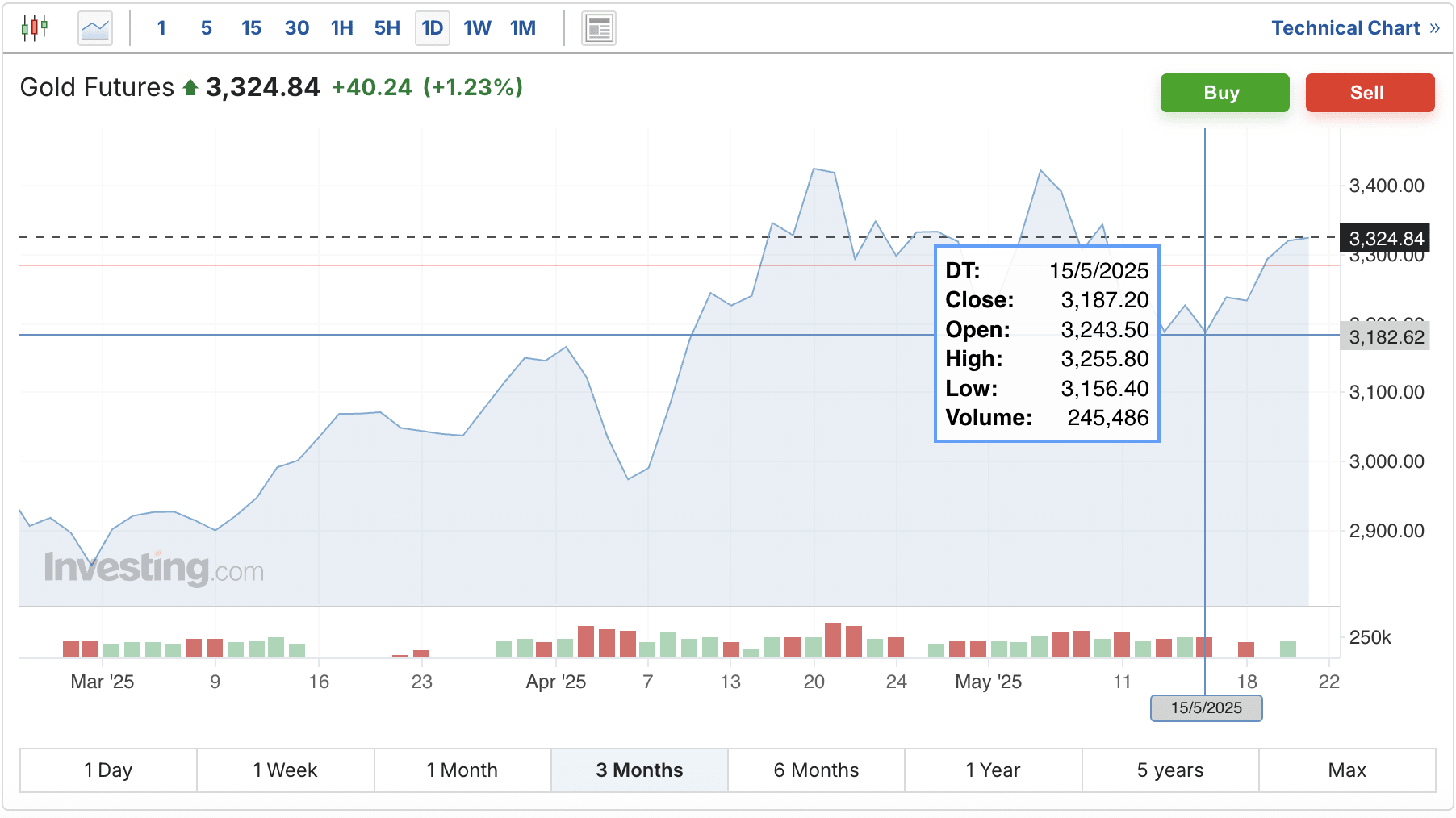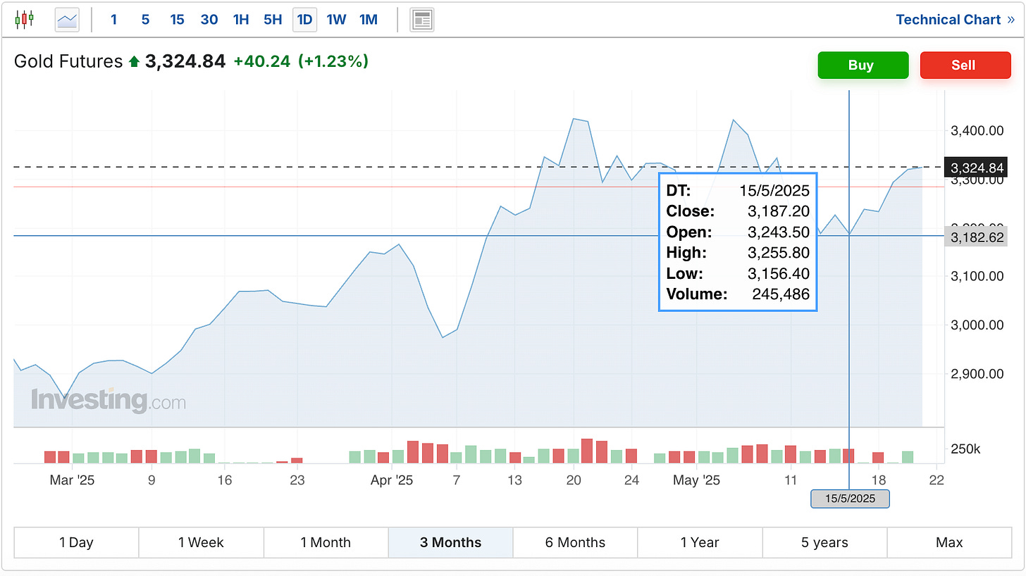 Wednesday was another strong day in the gold and silver markets. With the gold price up another $40 to $3,324, making the recent $3,156 low on May 15 almost a distant memory.