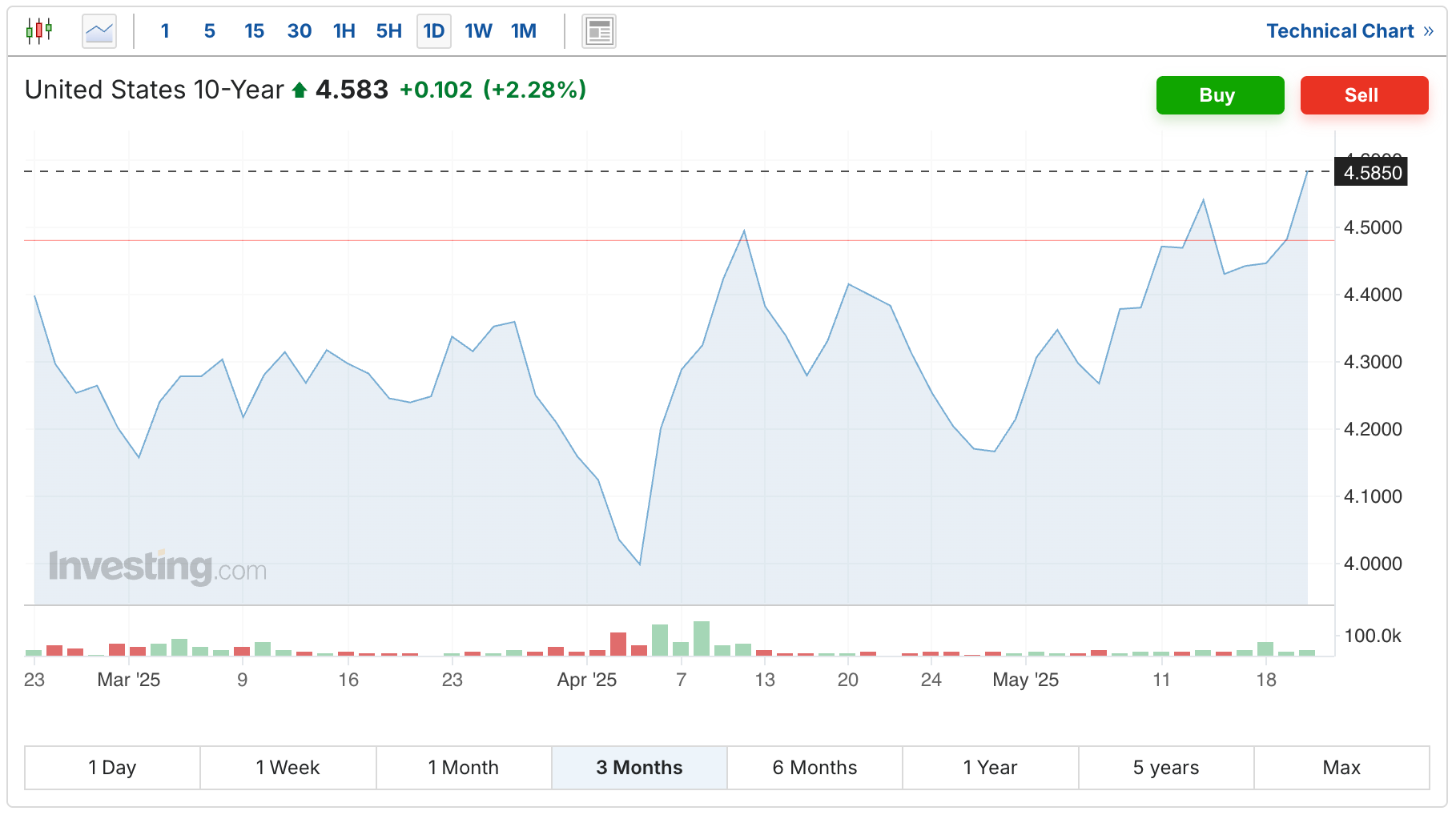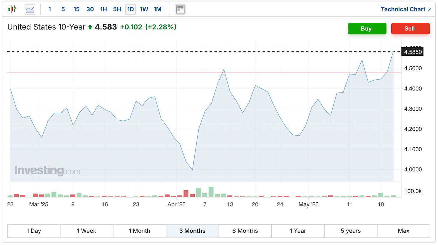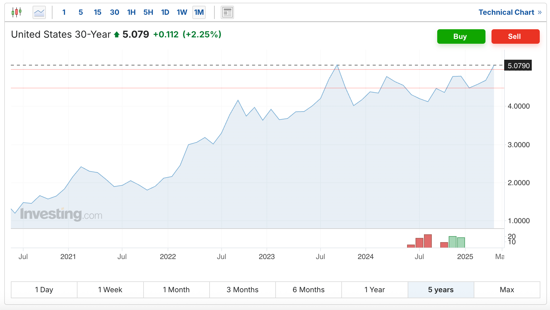 We'll talk more tomorrow about some of the recent increases in global long-term yields. But you can see in the 30-year bond chart how the yield has basically now reached its high point of the last 5 years.
