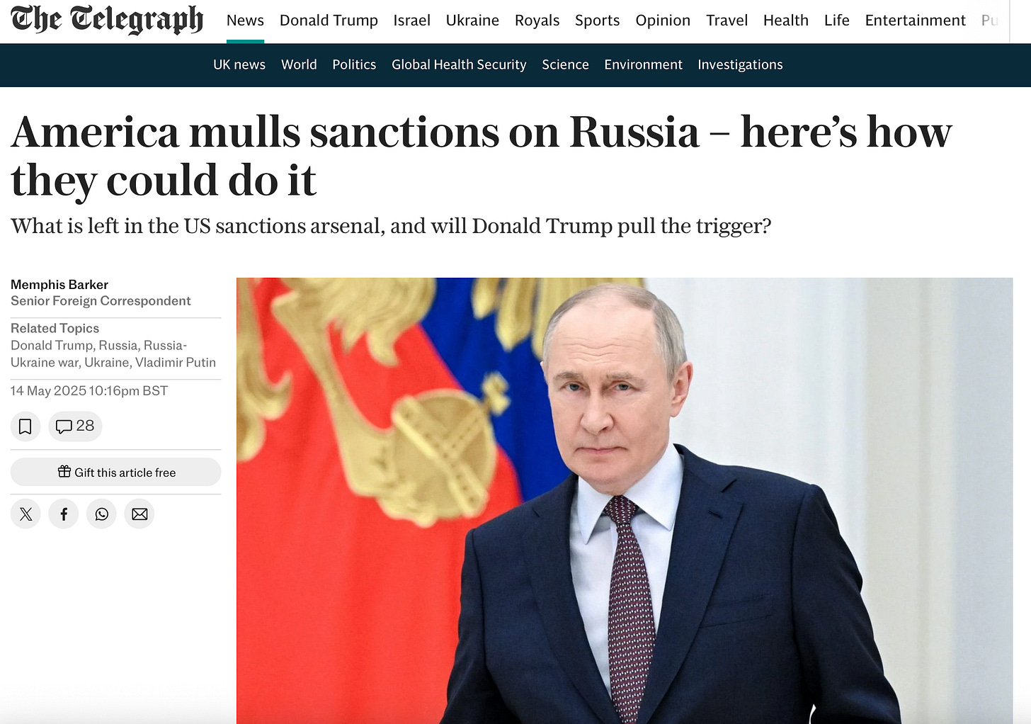 Clearly, something changed in the dynamics a few weeks ago between Trump and Putin. And now the Telegraph’s latest headline reads ‘America mulls sanctions on Russia – here’s how they could do it.’