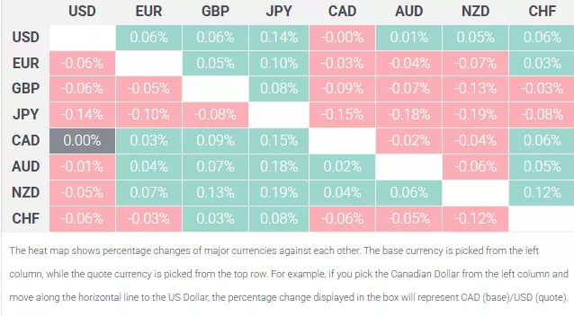 The table below shows the percentage change of Canadian Dollar (CAD) against listed major currencies today. Canadian Dollar was the strongest against the Japanese Yen.
