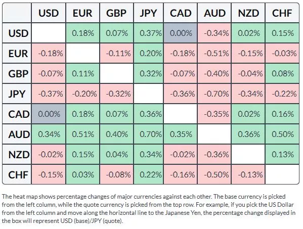 The table below shows the percentage change of US Dollar (USD) against listed major currencies today. US Dollar was the strongest against the Japanese Yen.
