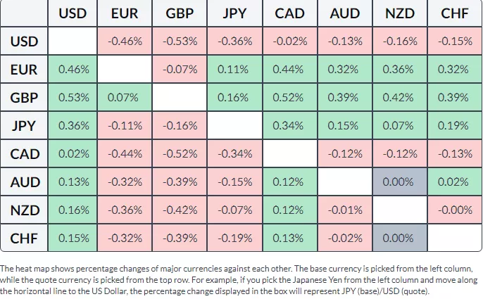 The table below shows the percentage change of Japanese Yen (JPY) against listed major currencies this week. Japanese Yen was the strongest against the US Dollar.