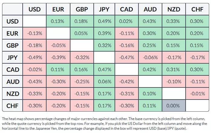The table below shows the percentage change of US Dollar (USD) against listed major currencies today. US Dollar was the strongest against the Japanese Yen.