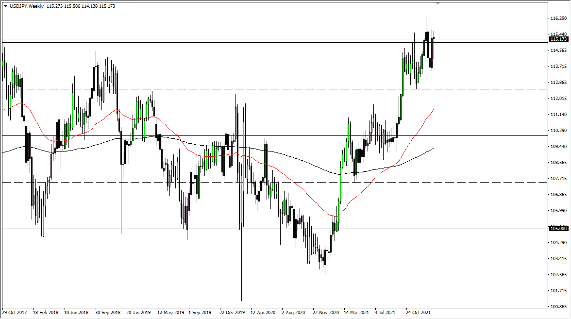 The euro had an explosive week as the ECB has changed its attitude. The central bank finally admitted that there was inflation and that is something they're concerned about, signaling that they could start to tighten monetary policy later this year. Because of this, the euro shot straight up in the air to test the 1.1485 level. This was the latest swing high, and if we can break above that it would change the structure of the market. That being said, we are a little overdone in the short term, especially as interest rates continue to spike in the United States, and the Federal Reserve is going to start raising rates as soon as March. I anticipate that a short-term pullback could occur, but if we break above the 1.15 handle then it is very likely that this market will go higher.