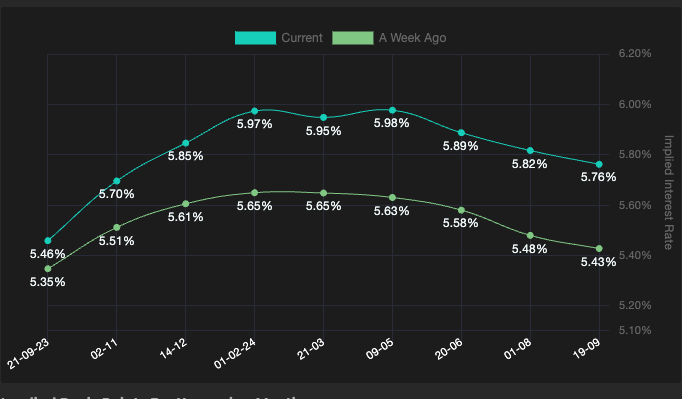 High inflation in the UK has been leading to higher interest rate expectations from the Bank of England which has continued this last week. On Tuesday this week UK Average earnings rose above maximum expectations to 7.8% vs 7.5% y/y prior. Average earnings in the UK are now outpacing inflation. Remember, that strong labour data is inflationary and these strong wage prints are an inflationary force. Then on Wednesday we had the UK inflation print. The core reading was 6.9% y/y above 6.8% expected and the headline was in line with expectations at 6.8%. Still three times above the Bank of England’s target.