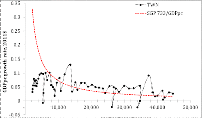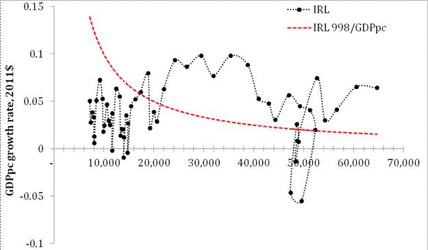 The MPD gives many examples of poor economic performance, which can be explained by various reasons and causes. These reasons are usually very convincing. In this section, we present the results of real GDP per capita analysis for nine small and mid-size countries demonstrating extremely high economic performance: Norway, Ireland, South Korea, Singapore, Taiwan, Hong Kong, Saudi Arabia, Bahrain, Qatar, and Oman. The reasons for such excellent performance are less self-explanatory. We are not going to discuss these reasons here and just present data and the overall misfit with our model. These countries are small and have one-sided economics. They do not influence the global economy and we can consider them as exotic but insignificant outliers.