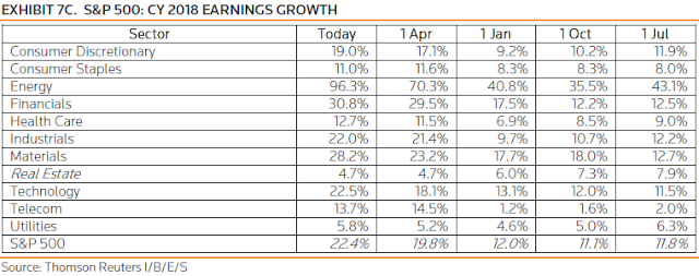 Great article, very clear. I was wondering- What is the underlying basis for the 9.7% predicted growth for 2019? It seems like a very specific value difference from both the 12% predicted for this year, as well as the updated prediction of 22.4% now expected. The update of 22.4% indicates corporate expansion (presumably spurred by the tax breaks, among other factors, as you pointed out), but that trend will probably take some time to contract. 9.7% seems like a pretty sharp difference. If it is an underestimate, that would imply that the equity index is even cheaper. Any thoughts?