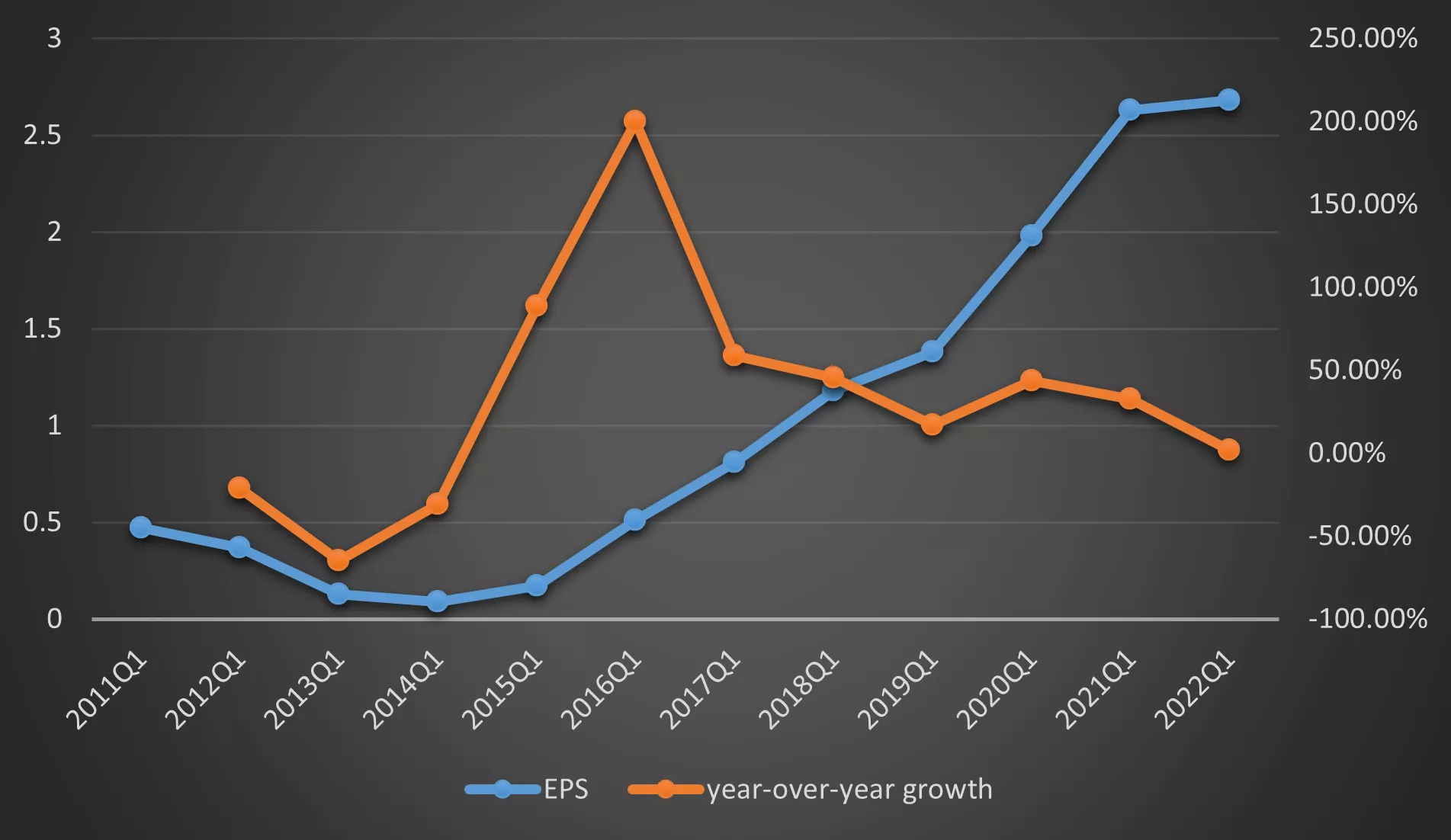 Although the revenue touched a peak, the market reckons revenue should be higher given such a high valuation. The slowdown of the year-over-year growth rate also brought some concerns to investors. Since Q1 of 2017, the EPS growth rate of Adobe has seen significant decline, while the revenue growth rate has decreased in 2022Q1 after experiencing fluctuation from 2016Q1 to 2021Q1.