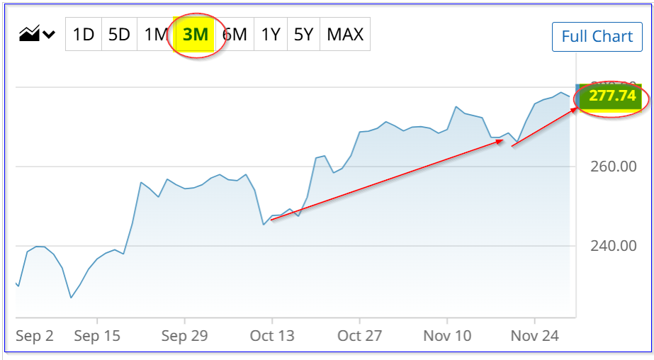 AAPL stock - last 3 months - Barchart - As of Dec. 1, 2025