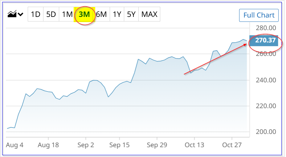 AAPL stock - last 3 months - Barchart - Oct. 31, 2025